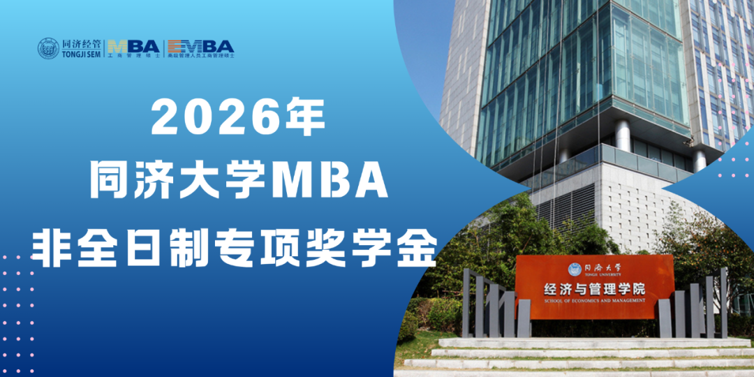 * 该奖学金方案仅适用于2026年入学并注册的同济大学非全日制MBA项目新生,不同奖学金可以叠加,但以学费总额为上限。