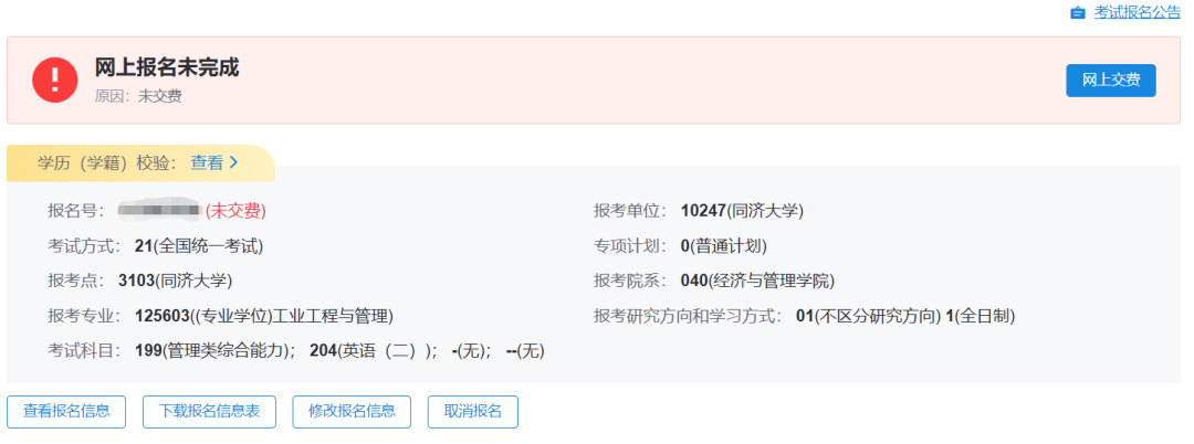 3、在网上报名选择“同济大学报考点”(代码:3103)的考生网上确认安排,请关注后续同济大学研究生院通知。